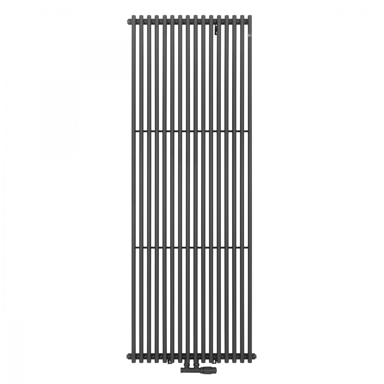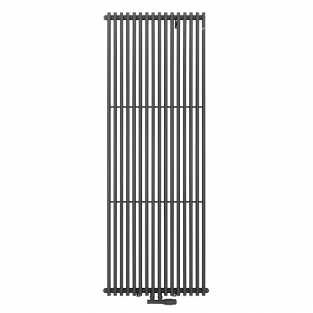 Matrix to grzejnik dekoracyjny w układzie pionowym. Zbudowany jest z prostych, pionowo ułożonych rurek połączonych kolektorami. Klasyczna, prosta forma grzejnika idealnie pasuje do każdego rodzaju pomieszczeń. Produkt w kolorze grafit struktura i z podłączeniem dolnym 50mm na środku dolnego boku.
