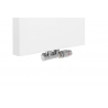 Produkt w wersji jednopłytowej w kolorze białym i z podłączeniem dolnym środkowym o rozstawie 50mm