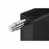 Produkt w wersji dwupłytowej w kolorze czarnym i z podłączeniem dolnym typu V o rozstawie 50mm z lewej strony grzejnika.