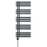 Nowoczesny grzejnik łazienkowy o zbudowany z prostokątnych listew. Asymetryczne usytuowanie pionowych kolektorów grzejnika nadaje mu dekoracyjnego charakteru, a jednocześnie pozwala na łatwiejsze przewieszanie ręczników. Grzejnik o wymiarach 1200x500mm o mocy 456W w kolorze grafitowym idealny do łazienki.