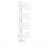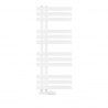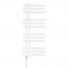 Nowoczesny grzejnik łazienkowy o zbudowany z prostokątnych listew. Asymetryczne usytuowanie pionowych kolektorów grzejnika nadaje mu dekoracyjnego charakteru, a jednocześnie pozwala na łatwiejsze przewieszanie ręczników. Grzejnik o wymiarach 94x40cm o mocy 311W w kolorze białym idealny do małej łazienki.