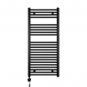 W skład zestawu wchodzi: grzejnik łazienkowy Constans 110x50 czarny, grzałka elektryczna Samba o mocy 400W, czarna.