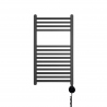 W skład zestawu wchodzi: grzejnik łazienkowy Essence 700x400 grafit, grzałka Rumba mocy 300W w kolorze czarnym.