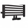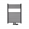 W skład zestawu wchodzi: Grzejnik łazienkowy Essence 70x50 z podłączeniem dolnym D50 środkowym w kolorze czarnym oraz zawór termostatyczny zespolony czarny, figura kątowa prawa.
