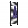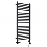 Grzejnik łazienkowy o nowoczesnym kształcie zbudowany z profili o prostokątnym przekroju. Doskonale wkomponuje się we wnętrza współczesnych łazienek. Wersja w kolorze czarnym o wymiarach 110x50cm i mocy 493W.