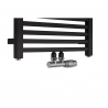 Grzejnik łazienkowy o nowoczesnym kształcie zbudowany z profili o prostokątnym przekroju. Doskonale wkomponuje się we wnętrza współczesnych łazienek. Wersja w kolorze czarnym o wymiarach 70x40cm i mocy 269W.