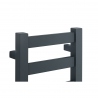 Grzejnik łazienkowy o nowoczesnym kształcie zbudowany z pionowych profili o kwadratowym przekroju i płaskich prostokątnych listew poziomych. Doskonale wkomponuje się we wnętrza współczesnych łazienek. Wersja w kolorze grafitowym o wymiarach 67x30cm i mocy 218W z podłączeniem dolnym środkowym.