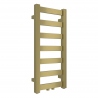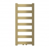 Grzejnik łazienkowy o nowoczesnym kształcie zbudowany z pionowych profili o kwadratowym przekroju i płaskich prostokątnych listew poziomych. Doskonale wkomponuje się we wnętrza współczesnych łazienek. Wersja w kolorze oliwkowe złoto o wymiarach 67x30cm i mocy 218W z podłączeniem dolnym środkowym.