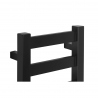 Grzejnik łazienkowy o nowoczesnym kształcie zbudowany z pionowych profili o kwadratowym przekroju i płaskich prostokątnych listew poziomych. Doskonale wkomponuje się we wnętrza współczesnych łazienek. Wersja w kolorze czarnym o wymiarach 97x30cm i mocy 293W z podłączeniem dolnym środkowym.