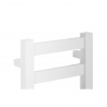 Grzejnik łazienkowy o nowoczesnym kształcie zbudowany z pionowych profili o kwadratowym przekroju i płaskich prostokątnych listew poziomych. Doskonale wkomponuje się we wnętrza współczesnych łazienek. Wersja w kolorze białym o wymiarach 97x30cm i mocy 293W z podłączeniem dolnym środkowym.