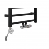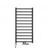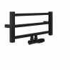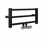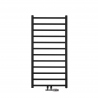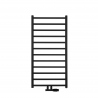 Nowoczesny łazienkowy grzejnik dekoracyjny zbudowany ze stalowych profili o kwadratowym przekroju. Szerokie przerwy między poziomymi listwami pozwalają swobodnie przewieszać ręczniki. Grzejnik o wymiarach 100x50cm o mocy 379W w kolorze czarnym. Podłączenie D50 dolne środkowe o rozstawie 50mm.