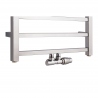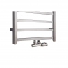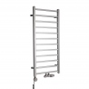 Nowoczesny łazienkowy grzejnik dekoracyjny zbudowany ze stalowych profili o kwadratowym przekroju. Szerokie przerwy między poziomymi listwami pozwalają swobodnie przewieszać ręczniki. Grzejnik o wymiarach 100x50cm o mocy 256W chromowany galwanicznie. Podłączenie D50 dolne środkowe o rozstawie 50mm.