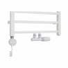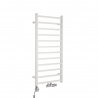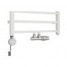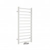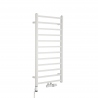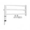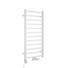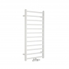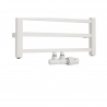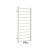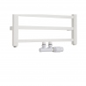 Nowoczesny łazienkowy grzejnik dekoracyjny zbudowany ze stalowych profili o kwadratowym przekroju. Szerokie przerwy między poziomymi listwami pozwalają swobodnie przewieszać ręczniki. Grzejnik o wymiarach 100x50cm o mocy 379W w kolorze białym. Podłączenie D50 dolne środkowe o rozstawie 50mm.