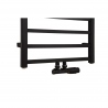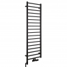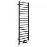 Nowoczesny łazienkowy grzejnik dekoracyjny zbudowany ze stalowych profili o kwadratowym przekroju. Szerokie przerwy między poziomymi listwami pozwalają swobodnie przewieszać ręczniki. Grzejnik o wymiarach 150x50cm o mocy 556W w kolorze czarnym. Podłączenie D50 dolne środkowe o rozstawie 50mm.