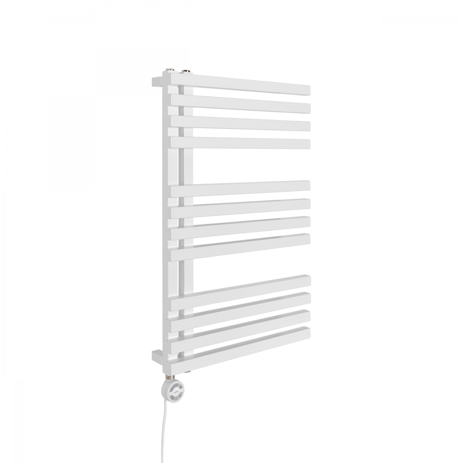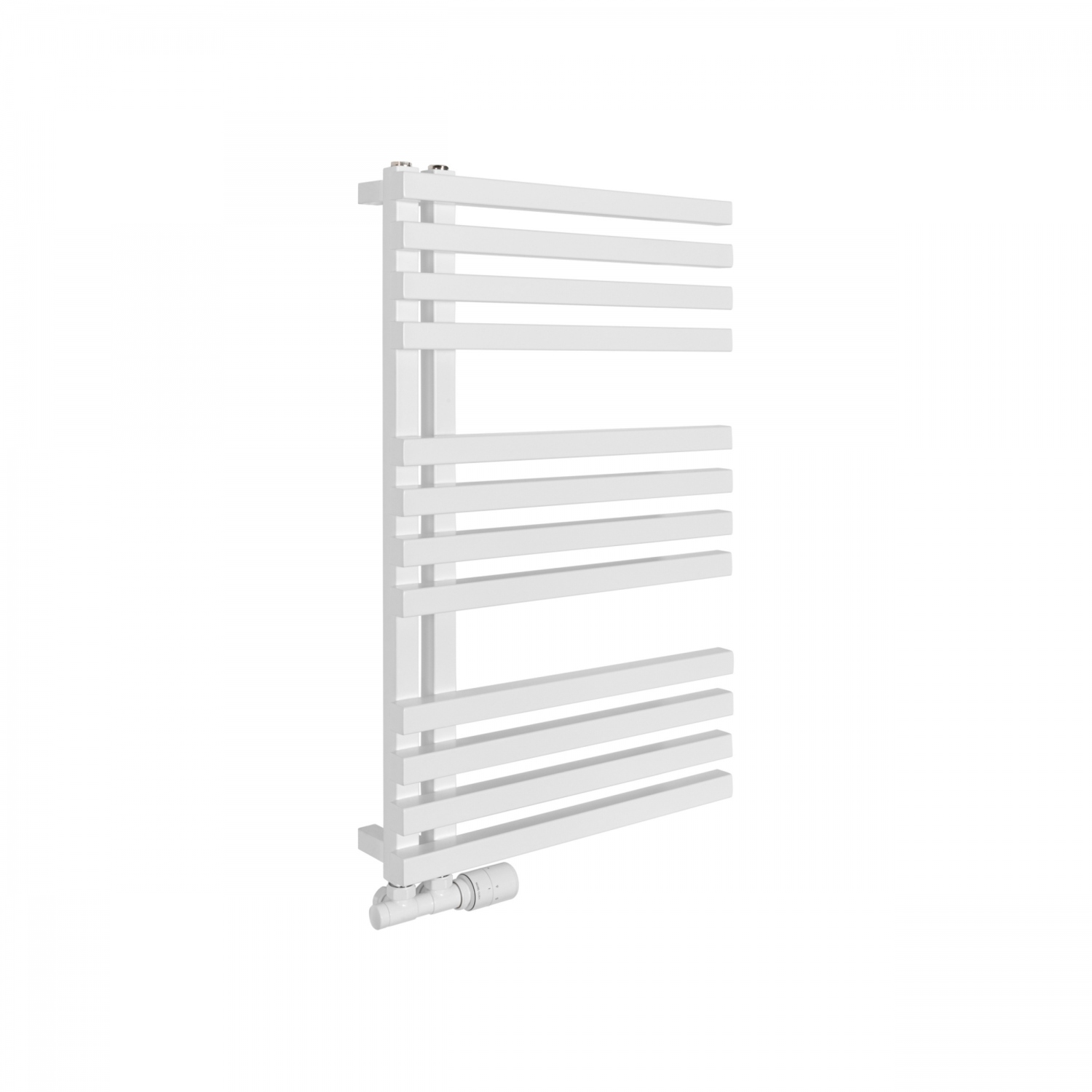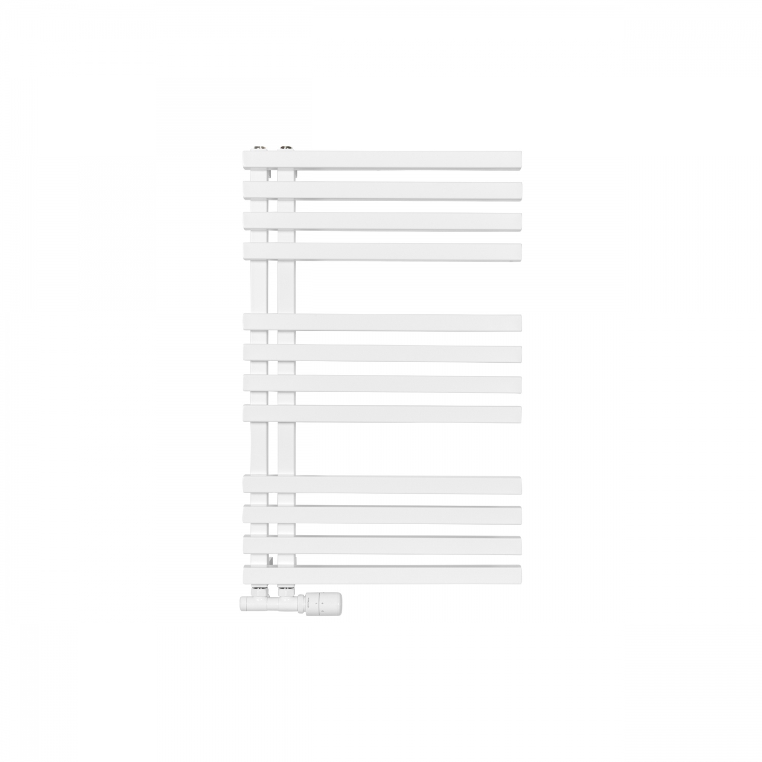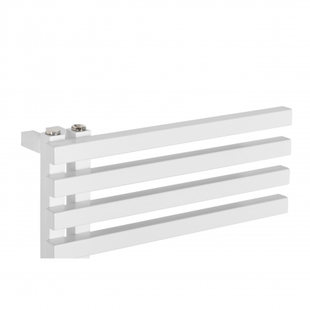 Grzejnik łazienkowy dekoracyjny LOLLY producenta Heat & Style to grzejnik drabinkowy o asymetrycznej, ozdobnej budowie. Ma szerokość 50cm i wysokość 87cm, podłączenie dolne lewe lub prawe, o rozstawie 50mm. Grzejnik posiada moc 368W, ale możliwe jest również zamontowanie grzałki elektrycznej o mocy do 400W. Grzejnik wykonany jest z profili o kwadratowym przekroju i dostępny w kolorze białym półmat. Jego nowoczesny design sprawia, że doskonale wpasuje się w wystrój każdej łazienki.
