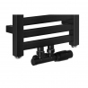 Grzejnik łazienkowy o nowoczesnym kształcie zbudowany z pionowych profili o kwadratowym przekroju i płaskich prostokątnych listew poziomych. Doskonale wkomponuje się we wnętrza współczesnych łazienek. Wersja w kolorze czarnym o wymiarach 100x30cm i mocy 302W z podłączeniem dolnym środkowym.
