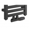 Grzejnik łazienkowy o nowoczesnym kształcie zbudowany z pionowych profili o kwadratowym przekroju i płaskich prostokątnych listew poziomych. Doskonale wkomponuje się we wnętrza współczesnych łazienek. Wersja w kolorze grafitowym o wymiarach 100x30cm i mocy 302W z podłączeniem dolnym środkowym.