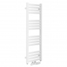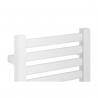 Grzejnik łazienkowy o nowoczesnym kształcie zbudowany z pionowych profili o kwadratowym przekroju i płaskich prostokątnych listew poziomych. Doskonale wkomponuje się we wnętrza współczesnych łazienek. Wersja w kolorze białym o wymiarach 100x30cm i mocy 302W z podłączeniem dolnym środkowym.