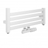 Grzejnik łazienkowy o nowoczesnym kształcie zbudowany z pionowych profili o kwadratowym przekroju i płaskich prostokątnych listew poziomych. Doskonale wkomponuje się we wnętrza współczesnych łazienek. Wersja w kolorze białym o wymiarach 127x50cm i mocy 545W z podłączeniem dolnym środkowym.