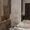 Grzejnik łazienkowy o nowoczesnym kształcie zbudowany z pionowych profili o kwadratowym przekroju i płaskich prostokątnych listew poziomych. Doskonale wkomponuje się we wnętrza współczesnych łazienek. Wersja w kolorze białym o wymiarach 48x30cm i mocy 171W z podłączeniem dolnym środkowym.