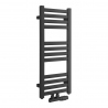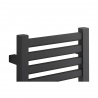 Grzejnik łazienkowy o nowoczesnym kształcie zbudowany z pionowych profili o kwadratowym przekroju i płaskich prostokątnych listew poziomych. Doskonale wkomponuje się we wnętrza współczesnych łazienek. Wersja w kolorze grafitowym o wymiarach 73x30cm i mocy 234W z podłączeniem dolnym środkowym.