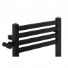 Grzejnik łazienkowy o nowoczesnym kształcie zbudowany z pionowych profili o kwadratowym przekroju i płaskich prostokątnych listew poziomych. Doskonale wkomponuje się we wnętrza współczesnych łazienek. Wersja w kolorze czarnym o wymiarach 73x40cm i mocy 234W z podłączeniem bocznym o rozstawie 50cm ułożonym symetrycznie na boku grzejnika. Podłączenie jest uniwersalne - lewe/prawe - wystarczy odwrócić grzejnik.