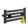 Grzejnik łazienkowy o nowoczesnym kształcie zbudowany z pionowych profili o kwadratowym przekroju i płaskich prostokątnych listew poziomych. Doskonale wkomponuje się we wnętrza współczesnych łazienek. Wersja w kolorze grafitowym o wymiarach 73x40cm i mocy 234W z podłączeniem dolnym środkowym.