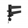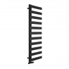 Nowoczesny grzejnik łazienkowy o zbudowany z prostokątnych listew. Asymetryczne usytuowanie pionowych kolektorów grzejnika nadaje mu dekoracyjnego charakteru, a jednocześnie pozwala na łatwiejsze przewieszanie ręczników. Grzejnik w kolorze czarnym idealny do małej łazienki.