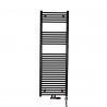 W skład zestawu wchodzi: grzejnik łazienkowy Constans 1500x500 czarny z podłączeniem dolnym D50 środkowym, zawór termostatyczny Multiflow New czarny w figurze kątowej prawej, oraz grzałka Samba 600W czarna.