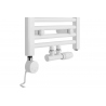 W skład zestawu wchodzi: grzejnik łazienkowy Constans CN-700x400 biały z podłączeniem dolnym D50 środkowym, zawór termostatyczny Multiflow New biały w figurze kątowej prawej, oraz grzałka Samba 300W biała.