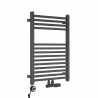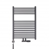 Grzejnik łazienkowy w kolorze grafitowym o nowoczesnym kształcie zbudowany z profili o prostokątnym przekroju. Doskonale wkomponuje się we wnętrza współczesnych łazienek.