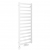 W zestawie grzejnik, zawór termostatyczny zespolony Multiflow New w figurze kątowej prawej oraz grzałka Samba 600W, kolor biały.