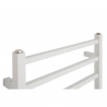 Nowoczesny łazienkowy grzejnik dekoracyjny zbudowany ze stalowych profili o kwadratowym przekroju. Szerokie przerwy między poziomymi listwami pozwalają swobodnie przewieszać ręczniki.