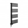 Nowoczesny grzejnik łazienkowy o zbudowany z prostokątnych listew. Asymetryczne usytuowanie pionowych kolektorów grzejnika nadaje mu dekoracyjnego charakteru, a jednocześnie pozwala na łatwiejsze przewieszanie ręczników.