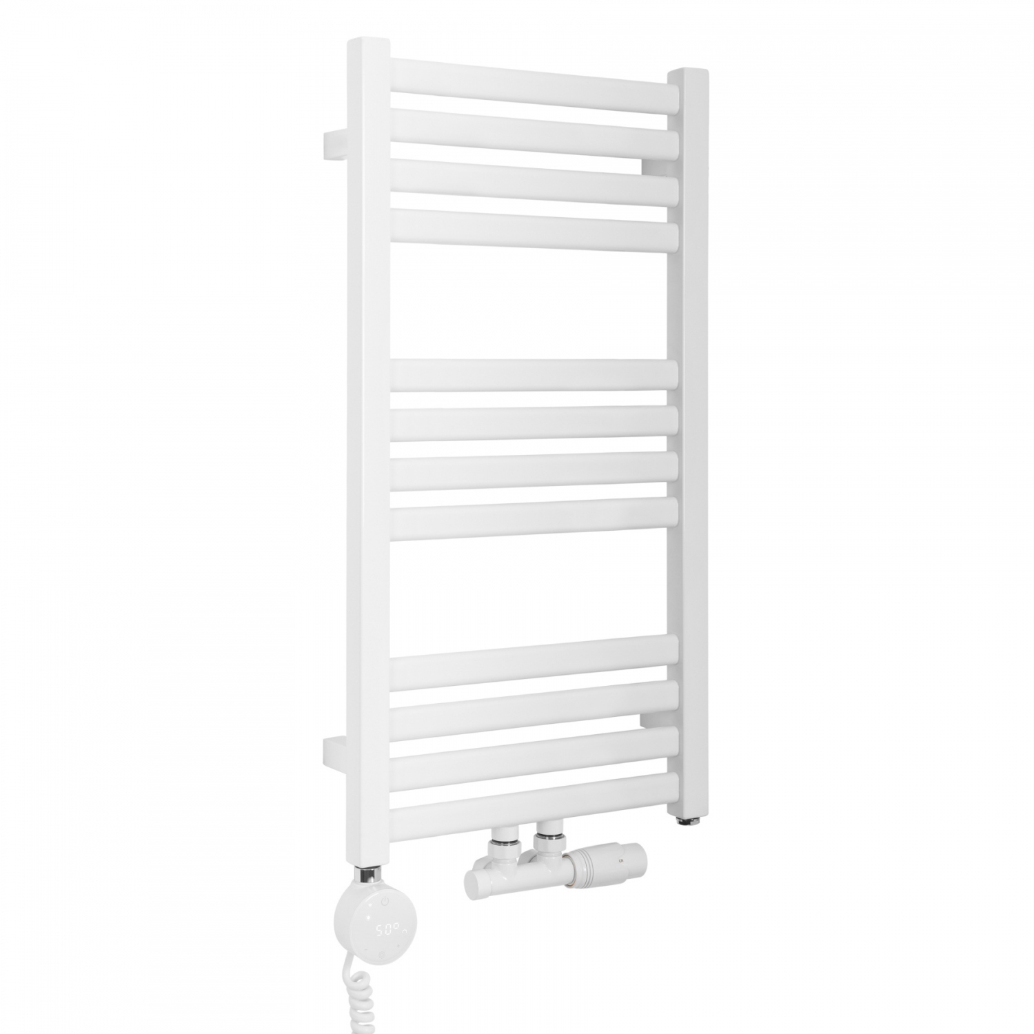Grzejnik łazienkowy, grzałka elektryczna, zestaw termostatyczny, akcesoria do montażu.