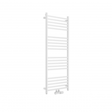 Grzejnik Noemi w wersji wodno-elektrycznej łączy tradycyjne ogrzewanie centralne z możliwością dogrzewania za pomocą grzałki elektrycznej, oferując komfort przez cały rok. Elegancki, prosty design sprawia, że doskonale pasuje do każdej łazienki, a praktyczna konstrukcja umożliwia efektywne ogrzewanie pomieszczenia i wygodne suszenie ręczników.
