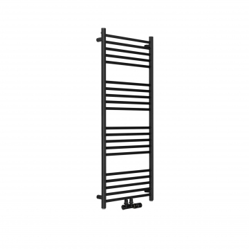 Grzejnik Noemi w wersji wodno-elektrycznej łączy tradycyjne ogrzewanie centralne z możliwością dogrzewania za pomocą grzałki elektrycznej, oferując komfort przez cały rok. Elegancki, prosty design sprawia, że doskonale pasuje do każdej łazienki, a praktyczna konstrukcja umożliwia efektywne ogrzewanie pomieszczenia i wygodne suszenie ręczników.