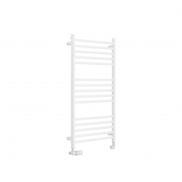 Grzejnik łazienkowy wodno-elektryczny Noemi 900x500 biały mat SINGLE PIPE VALVE + TANGO