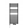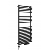 Grzejnik łazienkowy o nowoczesnym kształcie zbudowany z pionowych profili o kwadratowym przekroju i płaskich prostokątnych listew poziomych. Doskonale wkomponuje się we wnętrza współczesnych łazienek. Wersja w kolorze czarnym o wymiarach 120x50cm i mocy 695W z podłączeniem dolnym środkowym.