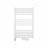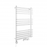 Grzejnik łazienkowy o nowoczesnym kształcie zbudowany z pionowych profili o kwadratowym przekroju i płaskich prostokątnych listew poziomych. Doskonale wkomponuje się we wnętrza współczesnych łazienek. Wersja w kolorze białym o wymiarach 80x50cm i mocy 368W z podłączeniem dolnym środkowym.