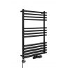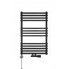 Grzejnik łazienkowy o nowoczesnym kształcie zbudowany z pionowych profili o kwadratowym przekroju i płaskich prostokątnych listew poziomych. Doskonale wkomponuje się we wnętrza współczesnych łazienek. Wersja w kolorze czarnym o wymiarach 80x50cm i mocy 368W z podłączeniem dolnym środkowym.