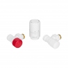 Zestaw termostatyczny odpowiednie do przyłączania grzejników łazienkowych i pokojowych z podłączeniem bocznym. Figura kątowa, kolor biały. W komplecie głowica termostatyczna z serii Tucan.