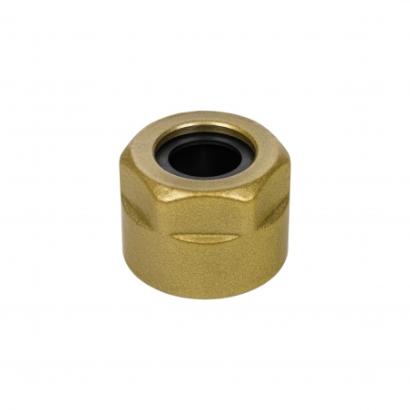 Złączka zaciskowa z gwintem M22x1,5 od strony zaworu. Przeznaczona do podłączania do zaworów grzejnikowych rur miedzianych o średnicy 15mm. Kolor C84 Gold / złoty.